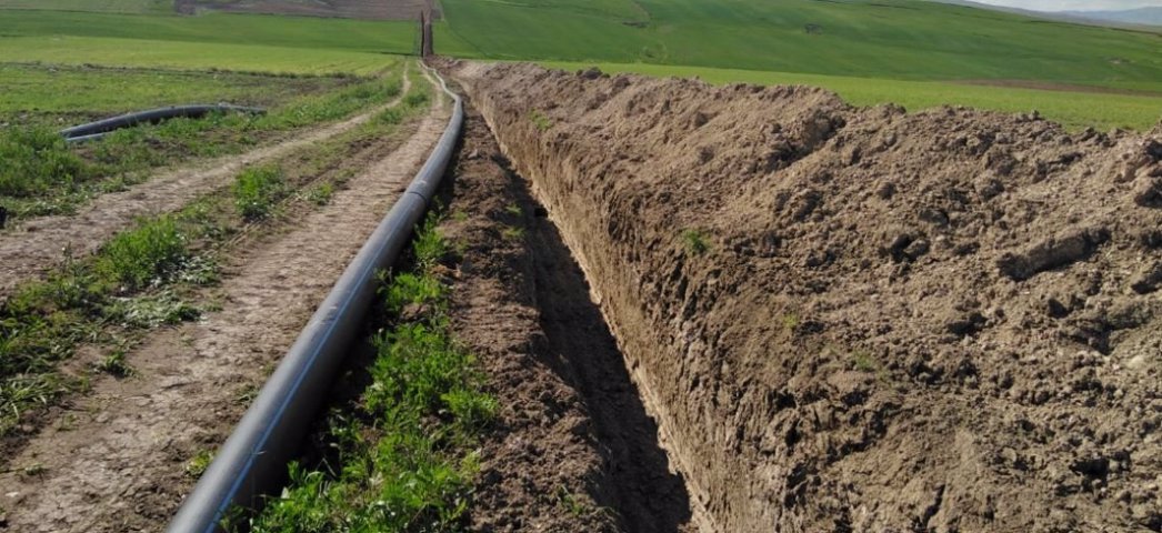 Tamamlandığında 27.000 dekar zirai arazinin borulu şebeke ile sulanacağı Kırşehir Yukarıçiftlik (Çiftlikbağla) Sulaması Yenileme İşi'nde çalışmalar aralıksız devam ediyor.