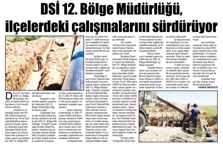 Nevşehir Sarıhıdır Pompaj Sulaması Yenileme İşinde Çalışmalar Devam Ediyor