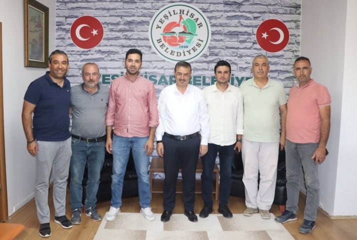 Arazi Toplulaştırma Şube Müdürü Özkan Baran ve beraberindeki teknik ekip Yeşilhisar Belediye Başkanı Sayın Halit TAŞYAPAN’ı makamında ziyaret ederek Yeşilhisar ovasında yapımı devam eden Arazi Toplulaştırma Projesi inşaat işleri hakkında bilgilendirme yapılarak, yapılacak işler konusunda görüş alışverişinde bulunulmuştur.